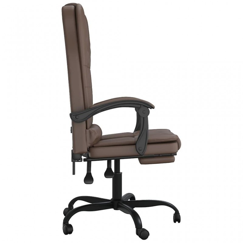 Colore: Marrone. Italiano: Materiale: Similpelle (75% cloruro di polivinile, 5% cotone, 20% poliestere), metallo, compensato. Imbottitura: Schiuma. Dimensioni complessive: 63 x 56 x (112,5-122) cm (L x P x A). Dimensioni reclinate: 63 x 128,5 x (100-109,5) cm (L x P x A). Superficie di seduta: 51 x 44 cm (L x P). Altezza della seduta da terra: 46,5-56 cm. Altezza del bracciolo da terra: 67,5-77 cm. Tensione di ingresso: CC 5 V. Corrente di ingresso: 2 A.
