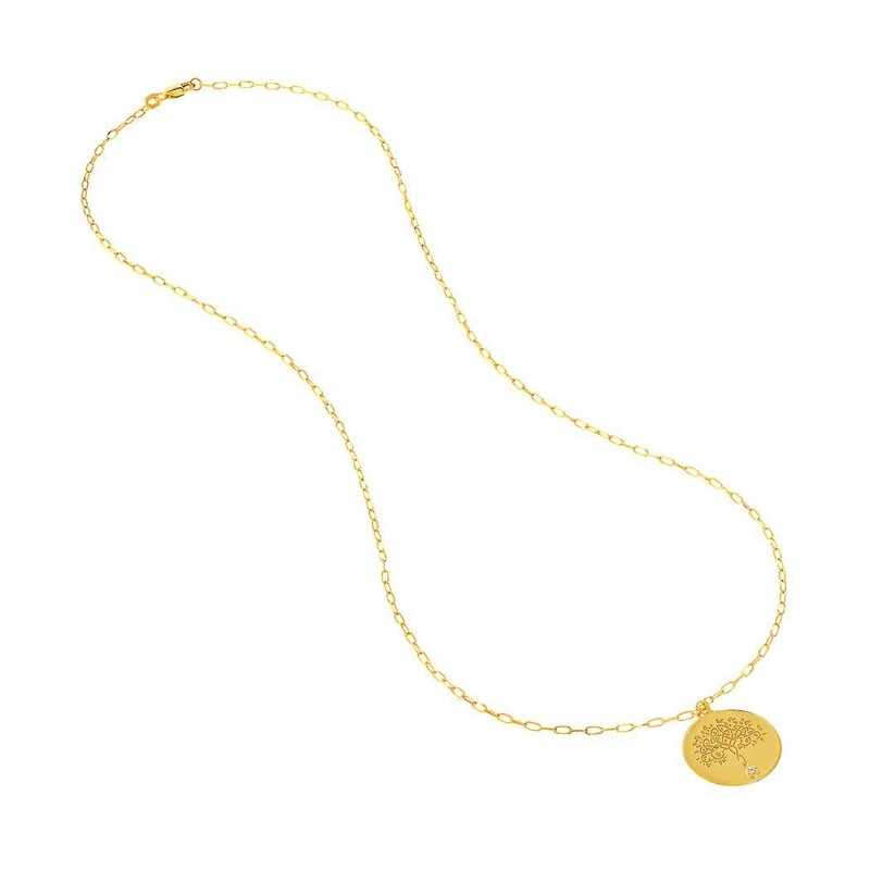 Collana regolabile in oro giallo 14k con medaglione albero della vita in diamanti da 0,015 dwt